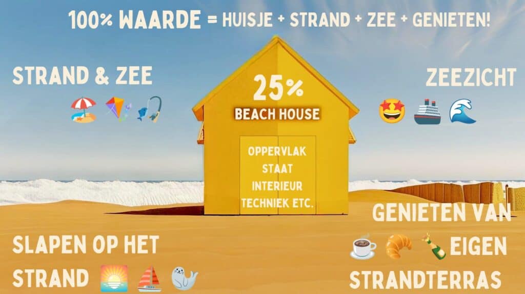 Voor gebruikte particuliere strandhuisjes is de waarde van het fysieke huisje veel kleiner, dan de waarde van het genot om te mogen slapen op het strand!